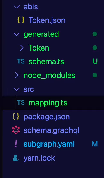 The subgraph manifest subgraph.yaml defines the smart contracts your subgraph indexes, which events from these contracts to pay attention to, and how to map event data to entities that Graph Node stores and allows to query. The full specification for subgraph manifests can be found here.